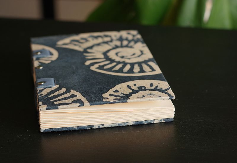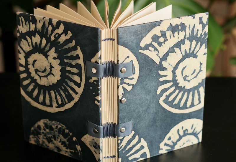 L'ensemble est assemblé à la main selon la technique copte ce qui permet une ouverture totale du carnet.